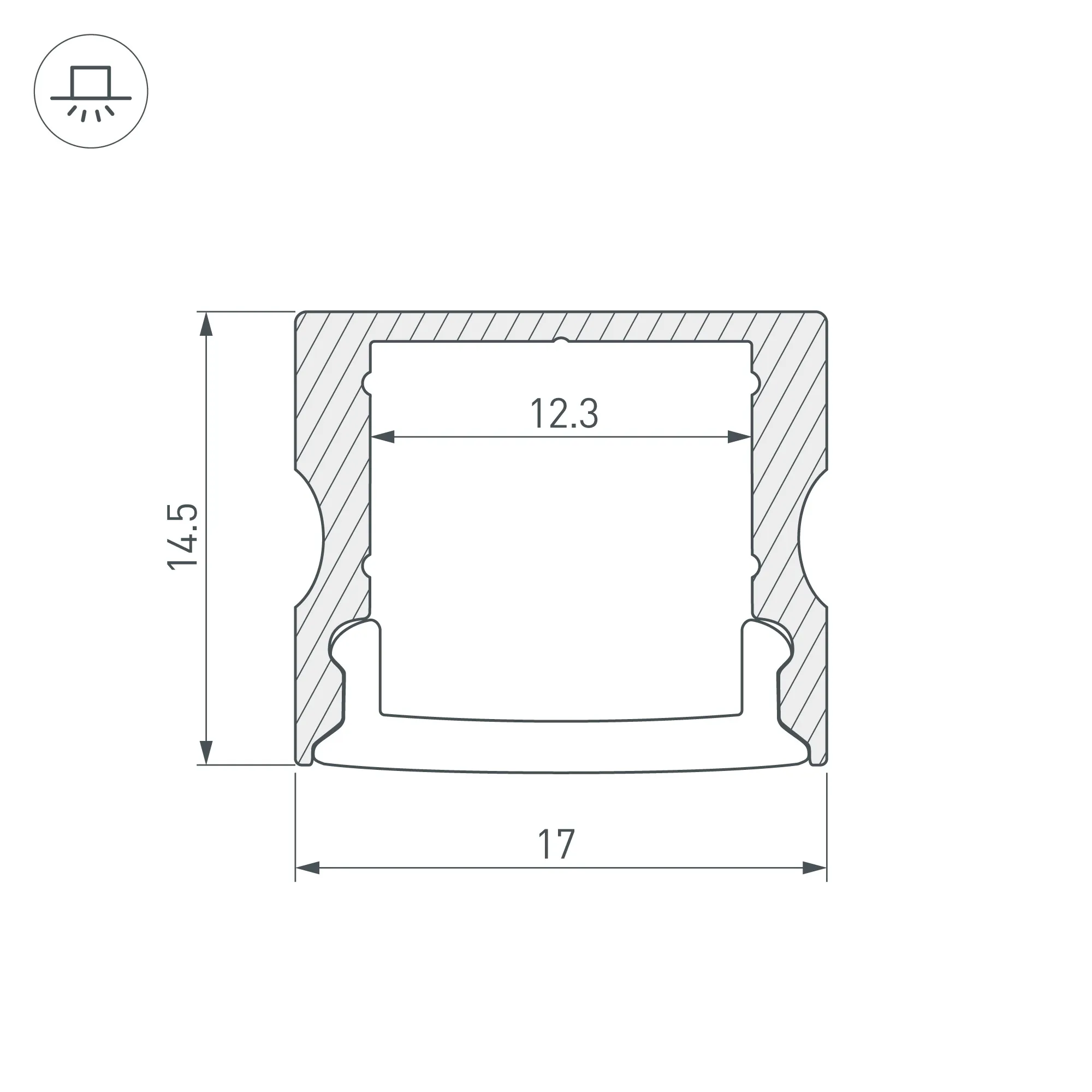 Алюминиевый анодированный накладной профиль для светодиодных лент и линеек. Габаритные размеры (L×W×H): 2000x17x14,5 мм. Ширина площадки для ленты 12,3 мм. Экраны, заглушки и другие аксессуары приобретаются отдельно. Цена за 1 метр.