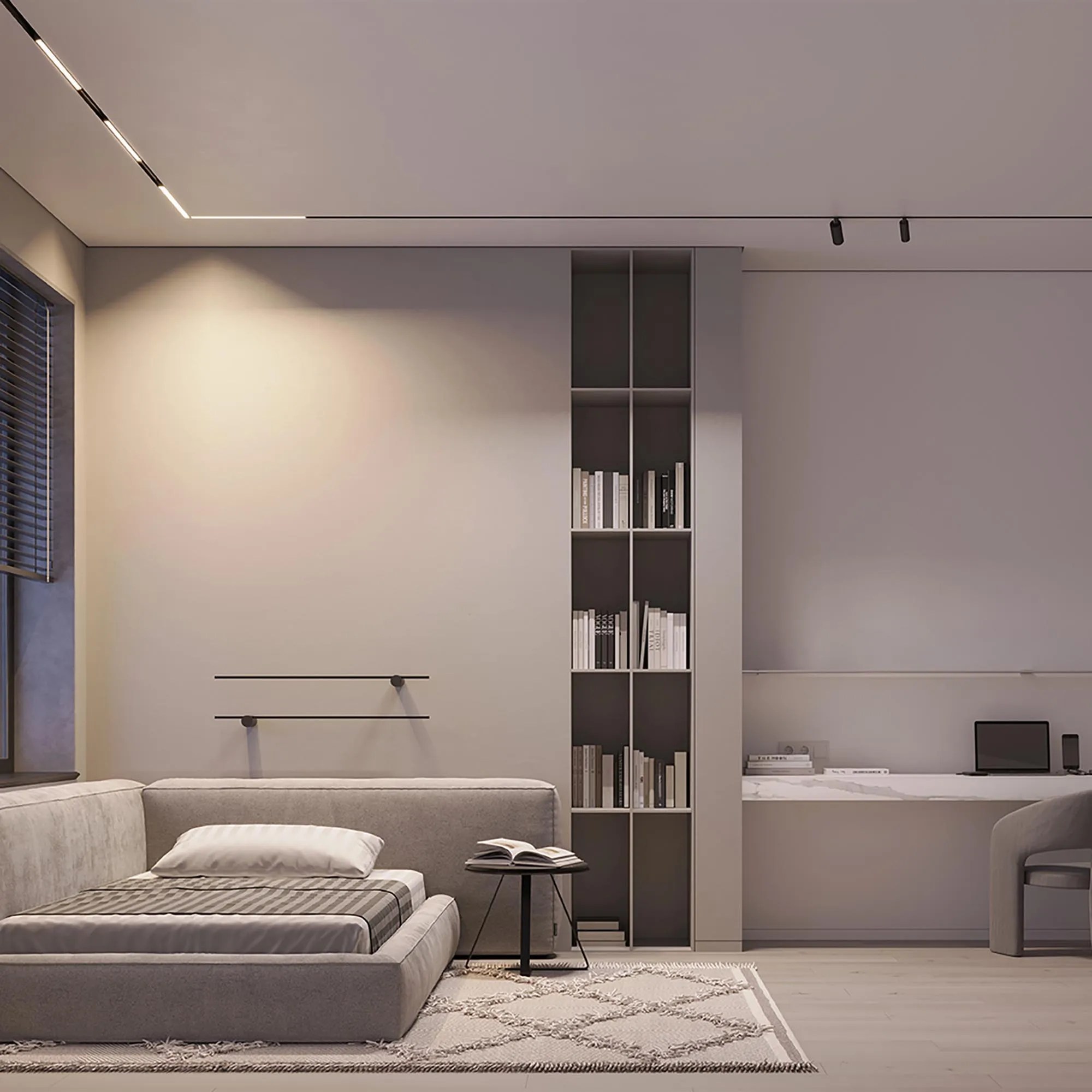 Светильник для магнитных треков MAG-ORIENT шириной 26 мм с управлением TUYA (Wi-Fi) и изменяемой цветовой температурой. Мощность 16 Вт, св. поток 1100-1200 лм, 54 лм/Вт, изменяемая цветовая температура 2700-6500 K, CRI>90, угол 80°, напряжение питания 48 В. Черный прямоугольный корпус из металл, экран поликарбонат, степень защиты IP20. Размер: длина 465 мм, ширина 22 мм, высота 42 мм. Монтаж на трек MAG-ORIENT. Пульсация <1%. Работает с голосовыми помощниками (Алиса, Маруся и т.д.)