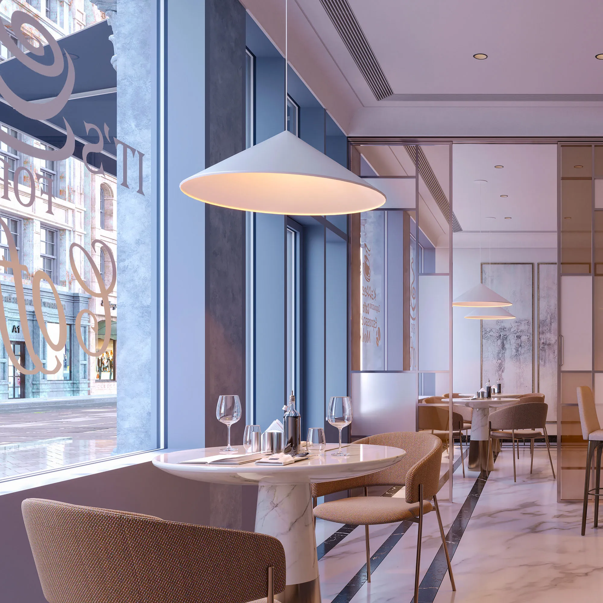 Подвесной светильник. Мощность 14 Вт, св. поток 1200 лм, 90 лм/Вт, теплый 2700K, CRI>97, угол 36°, напряжение питания 230 В. Белый корпус из алюминия в форме конуса с белой внутренней поверхностью, линза-рассеиватель из PMMA, степень защиты IP20. Размер: диаметр 750 мм, высота 230 мм. Монтаж подвесной, длина подвеса 2000 мм, регулируемая. В комплекте 2 вида чаш. Габариты встраиваемой чаши: Ø 80x23 мм. Габариты накладной чаши Ø140x55 мм. Драйвер 27-42 В, 350 мА, пульсация <1%. Управление по TRIAC.